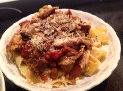 First day, I served it over papardelle, and the next couple of days over homemade polenta. The flavours intensify day after day.